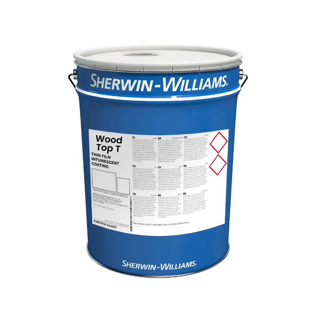 Wässrige, transparente Brandschutzbeschichtung für Holz.